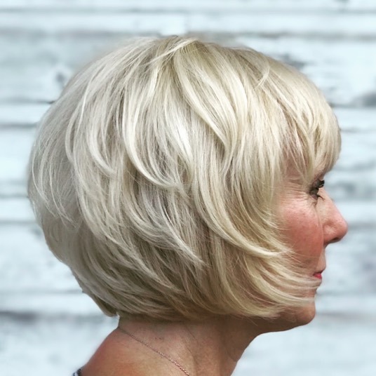 Not every bob creates the same thickening effect. To make fine hair look denser, the cut usually needs at least one of the following elements: