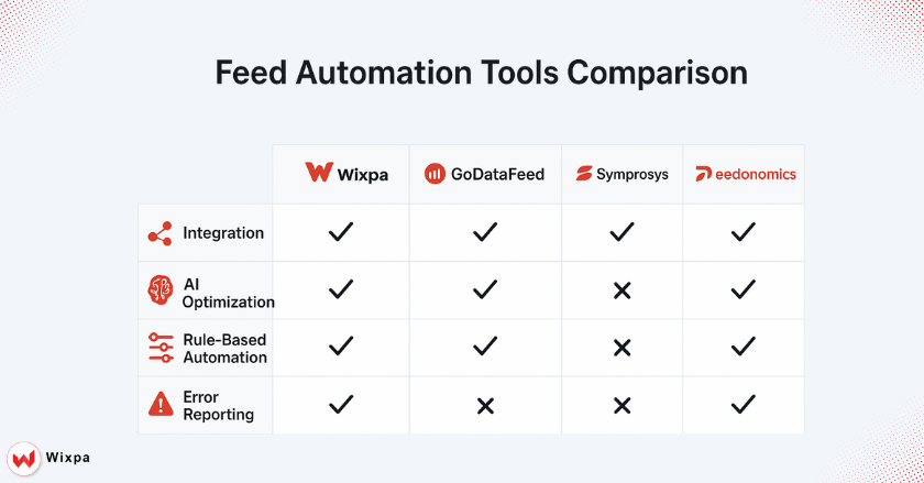 In 2026, the landscape will keep changing. Some top platforms to consider are Wixpa, GoDataFeed, Symprosys, and Feedonomics. These tools provide a complete set of features. They help e-commerce businesses of all sizes succeed with Google Shopping feed automation.